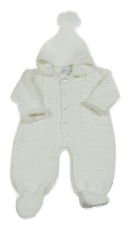• Smotanová pletená kombinéza so vzorom a kapucňou dandelion