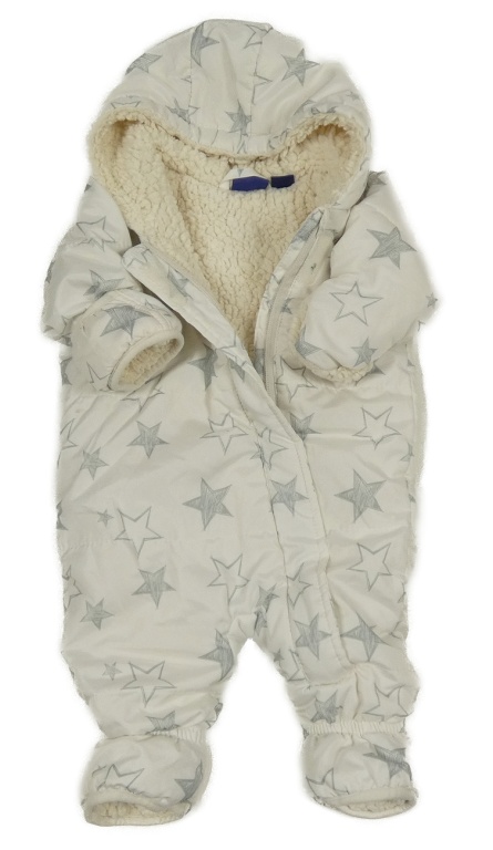 • Smotanová šušťáková zimná kombinéza s hviezdičkami a kapucňou lupilu