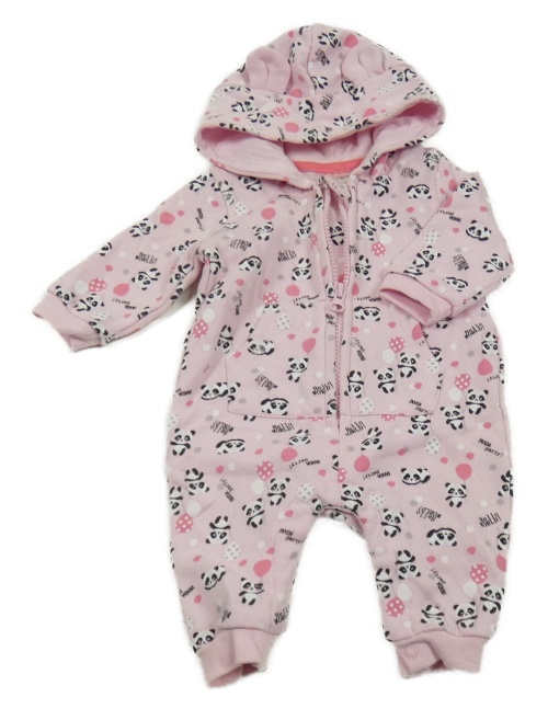 Svetloružová tepláková kombinéza s pandami a kapucňou