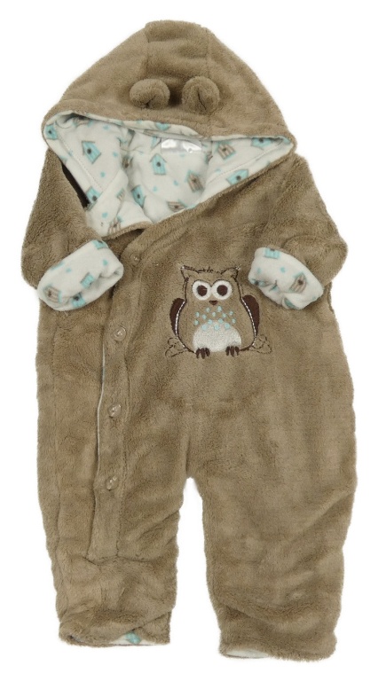 • Hnedá plyšová zateplená kombinéza so sovou a kapucňou Ergee
