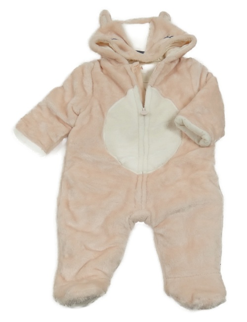Ružovo-biela chlpatá zateplená kombinéza s kapucí - líška C&A