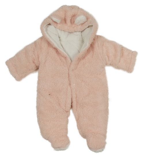 Svetloružová chlpatá zateplená kombinéza s kapucňou