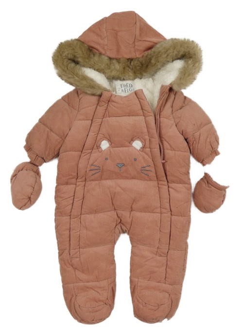 Ružová menšestrová zateplená kombinéza s ňufáčikom a kapucí + rukavice F&F