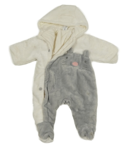 Smetanovo-sivá chlpatá zateplená kombinéza s mačkou a kapucňou C&A