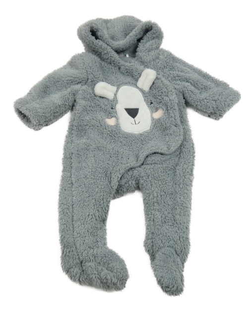 • Sivá huňatá podšitá kombinéza s medvedíkom a kapucňou Smile