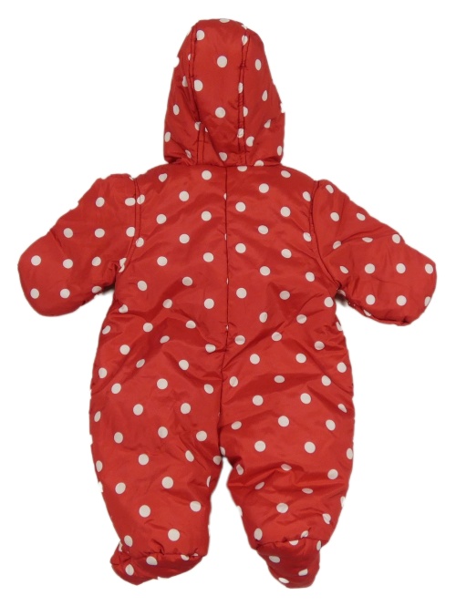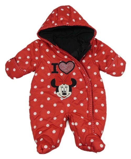 Červená bodkovaná á šušťáková zimná kombinéza s Minnie a kapucňou George