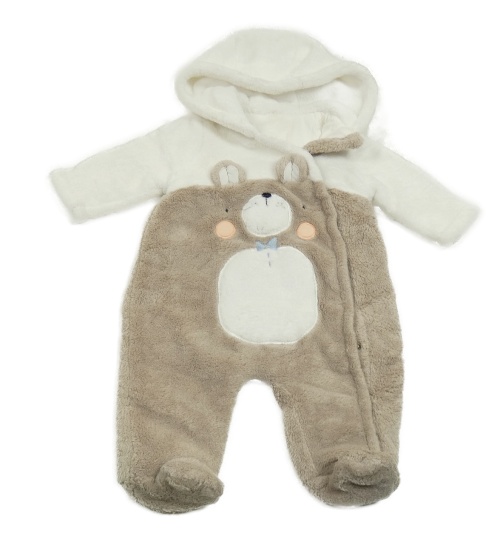 Hnedo-smotanová chlpatá podšitá kombinéza s medvěďom a kapucňou Tu