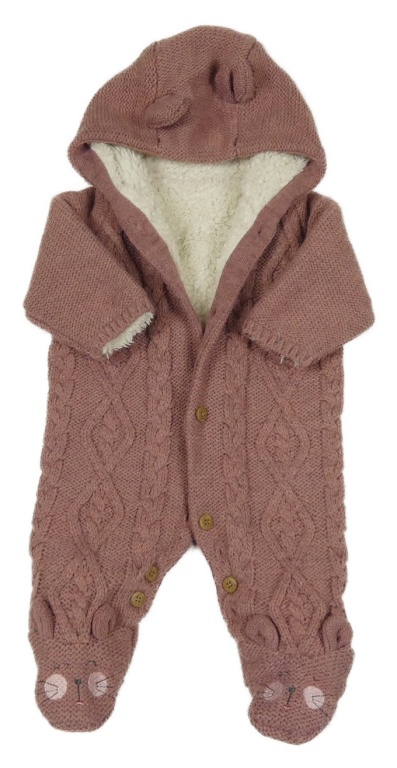 Staroružová pletená zateplená kombinéza so vzorom a kapucňou s uškami George