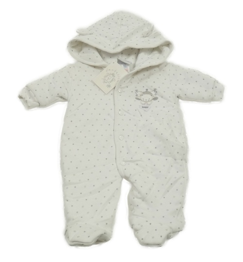 Nové - Biela bavlnená zateplená kombinéza s hvězdami, medvedíkom a kapucňou