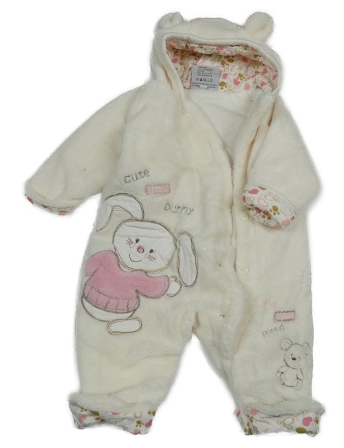 Biela chlpatá kombinéza s uškami a králikom Topolino