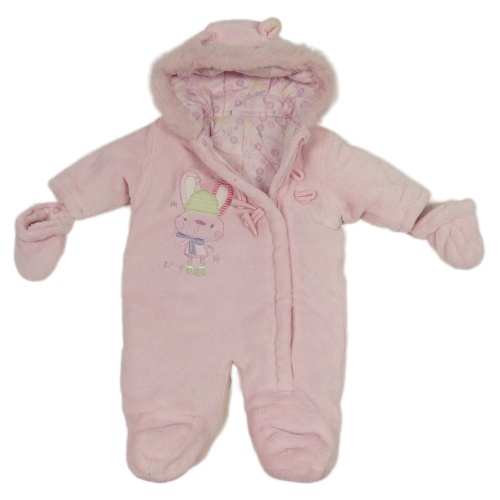 Ružová chlpatá zateplená kombinéza s králikom a kapucí + rukavice