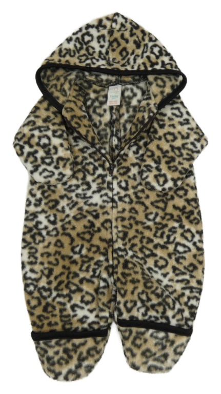 Béžovo-biela fleecová kombinéza s leopardím vzorom a kapucňou Adams
