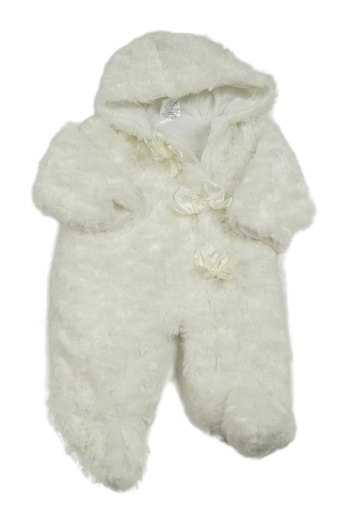 Smotanová kožušinová podšitá kombinéza s mašľami a kapucňou
