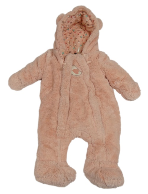 Svetloružová chlpatá zateplená kombinéza s vtáčikom a kapucňou Orchestra