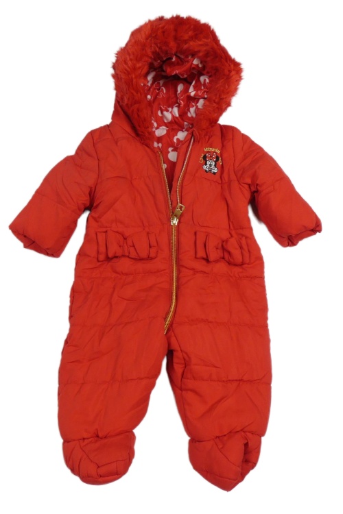 Červená šušťáková zimná kombinéza s Minnie a kapucňou George
