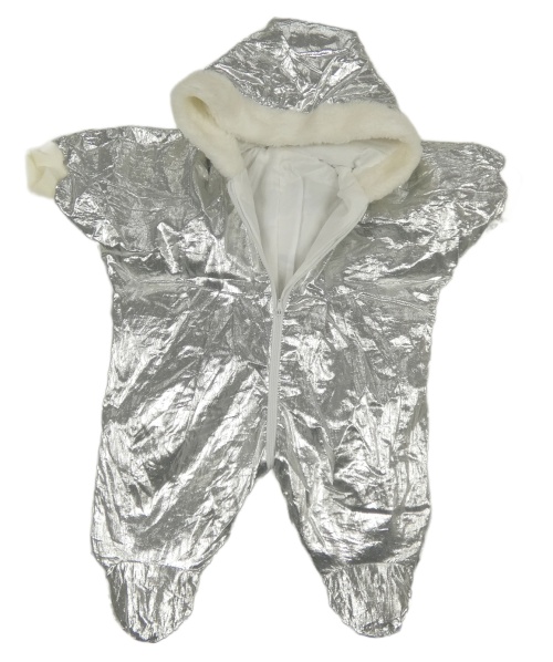 Strieborná šušťáková zimná kombinéza s kapucňou
