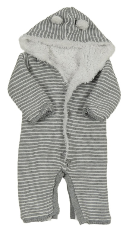 Sivo-biela pruhovaná pletená zateplená kombinéza s kapucňou Matalan