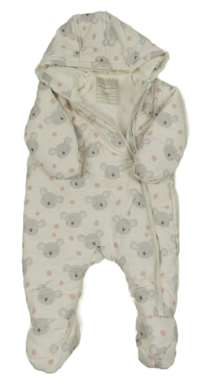 Biela šušťáková zimná kombinéza s koalami a kapucňou Tu