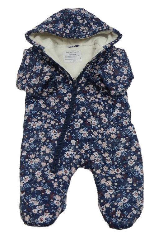 Tmavomodrá kvetovaná šušťáková zateplená kombinéza s kapucňou Primark