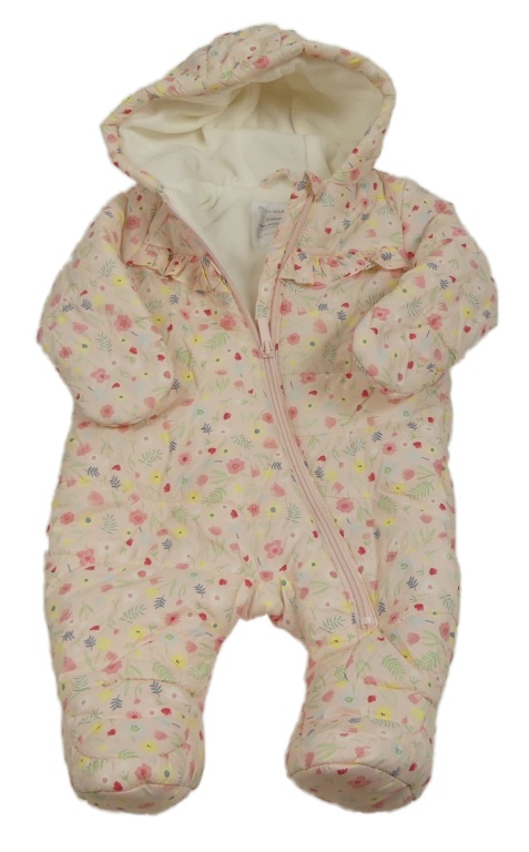 Ružová kvetovaná šušťáková zateplená kombinéza s kapucňou Primark