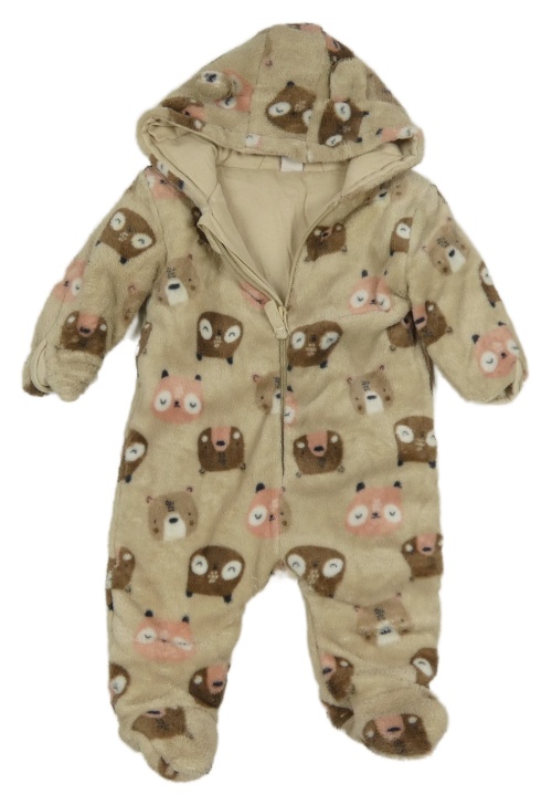 • Béžová chlpatá zateplená kombinéza so zvieratkami a kapucňou Topomini
