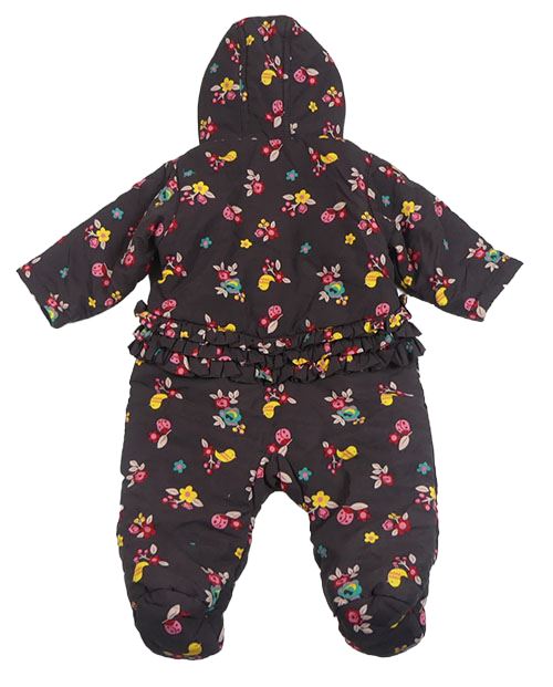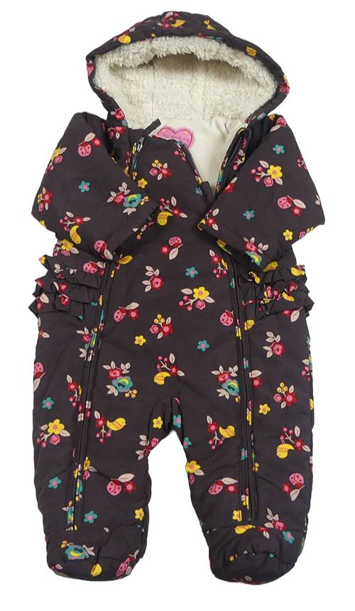 • Tmavohnedá šušťáková zimná kombinéza s kvietkami a lienkami a vtáčky a volánikmi a kapucňou M&S