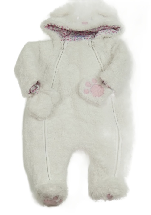 Biela chlpatá zateplená kombinéza s kapucí + rukavice Jojo Maman Bébé