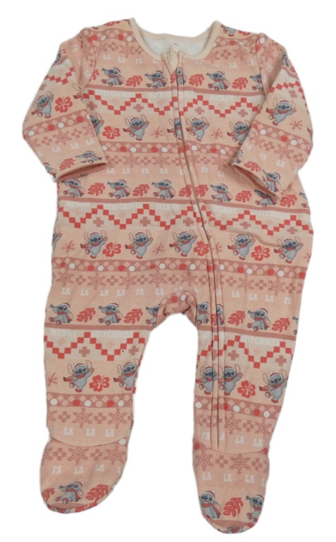 Pudrovo-světlepudrová vzorovaná tepláková tepláková kombinéza so Stitchem s vánočním motívom George