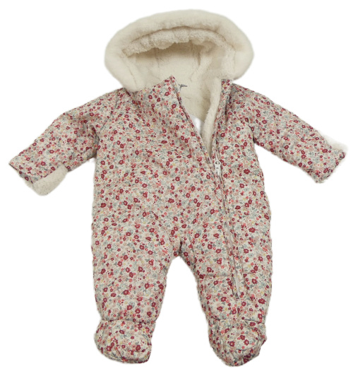 Nové - Smotanová kvetovaná šušťáková zimná kombinéza s kapucňou Tu