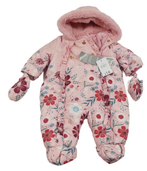 Nové - Ružová kvetovaná šušťáková zimná kombinéza s kapucí + rukavice George