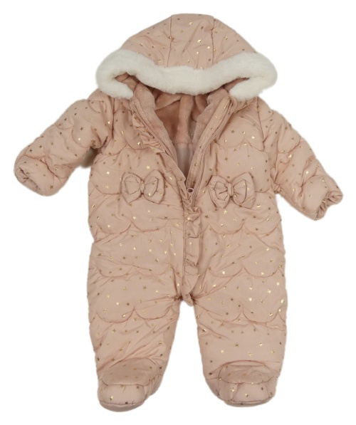 Svetloružová šušťáková zimná kombinéza s hviezdičkami a kapucňou Matalan