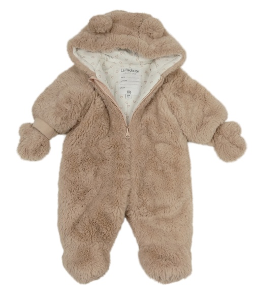 Pudrová kožušinová zateplená kombinéza s kapucí + rukavice