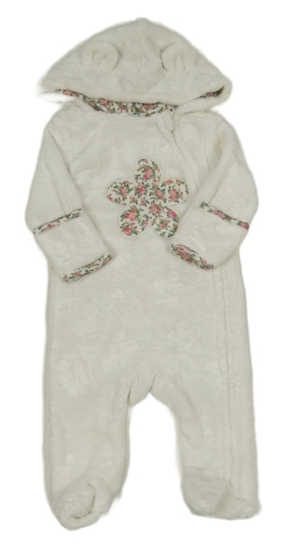 Biela chlpatá kombinéza s kvietkami a kapucňou Penelope Mack