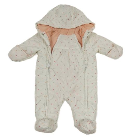 Biela bodkovaná á šušťáková zimná kombinéza s kapucňou George