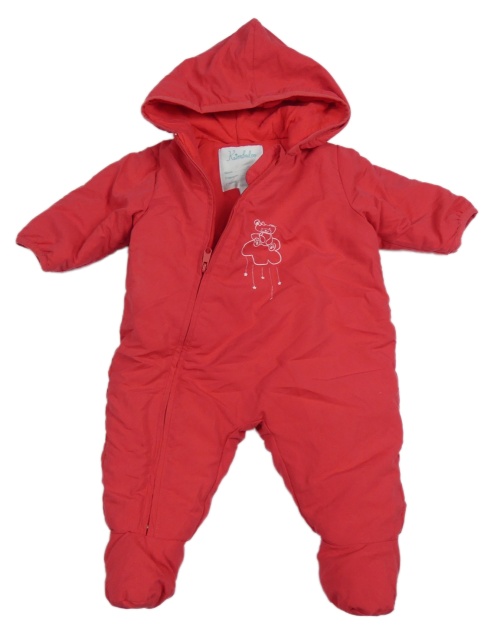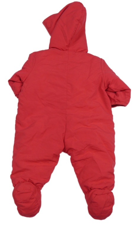 Malinová šušťáková zimná kombinéza s medvedíkom a kapucňou