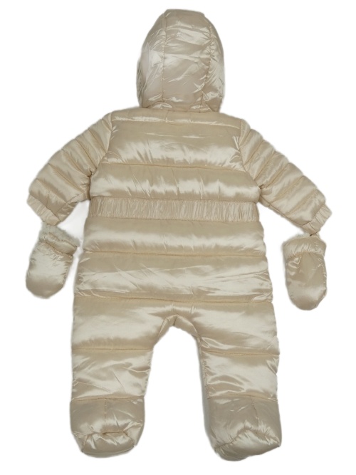 Světlepudrová prešívaná saténová zimná kombinéza s kapucňou s kožešinou + rukavice F&F