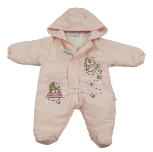 Ružová šušťáková zimná kombinéza so zvířaty a kapucňou