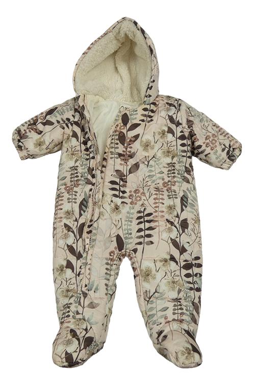 Pudrová kvetovaná šušťáková zateplená kombinéza s listami a kapucňou Next