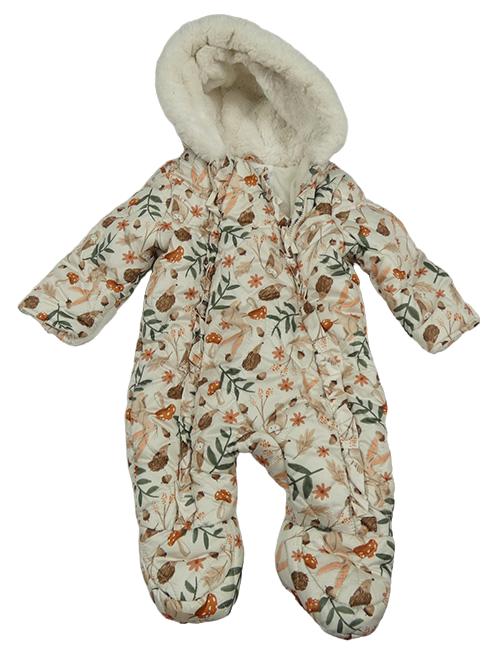 Béžová šušťáková zateplená kombinéza s lesními zvířaty a kapucňou Primark