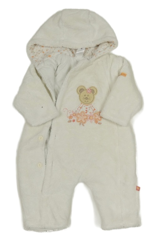 Biela chlpatá zateplená kombinéza s medvedíkom a kapucňou C&A