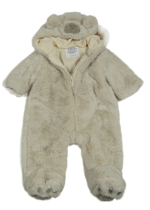 • Béžová kožušinová podšitá kombinéza s kapucí - medvedík F&F