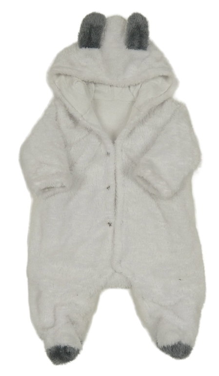 Biela chlpatá podšitá kombinéza s kapucňou s uškami
