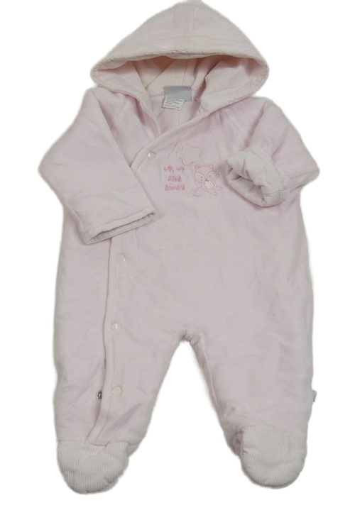 Svetloružová zamatová zateplená kombinéza s medvěďom a kapucňou