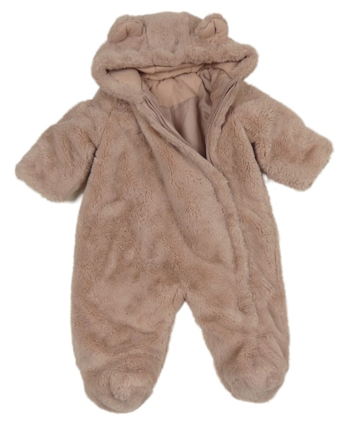 Staroružová kožušinová zateplená kombinéza s kapucňou Matalan