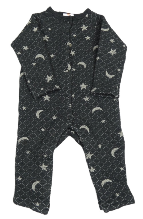 Tmavosivá károvaná tepláková vyteplená kombinéza s hviezdičkami a mesiacmi HEMA