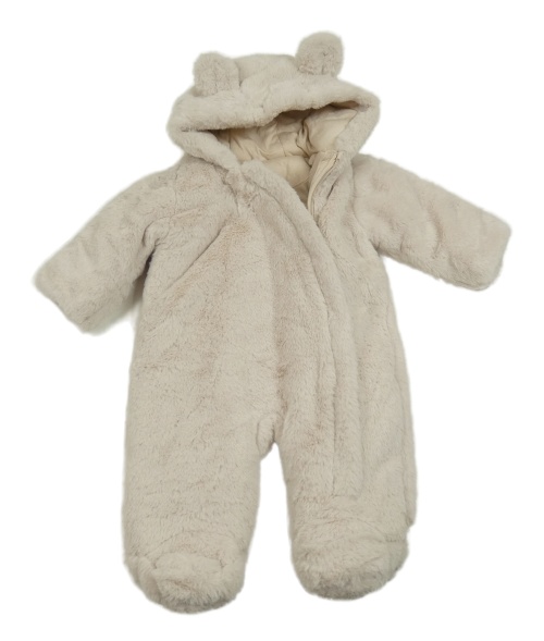 Béžová kožušinová zateplená kombinéza s kapucňou
