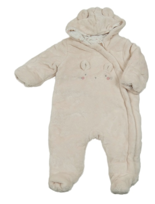Svetloružová chlpatá zateplená kombinéza s myškou a kapucňou Mothercare