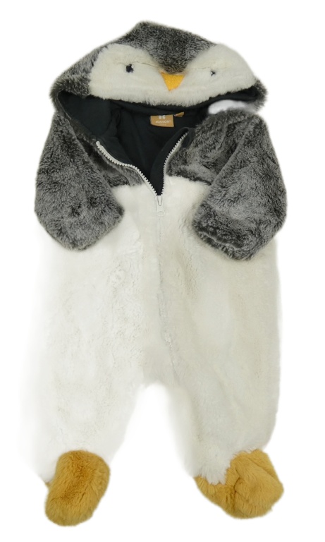 • Bielo-tmavosivá chlpatá podšitá kombinéza s kapucí - tučňák Manor