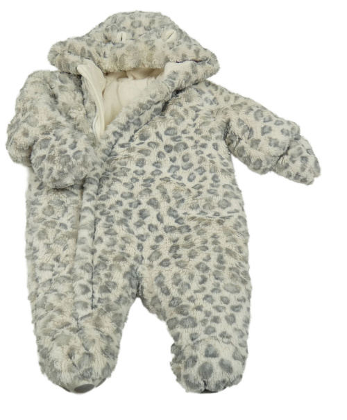 Smotanová chlpatá zateplená kombinéza s leopardím vzorom a kapucí+ rukavice Mothercare