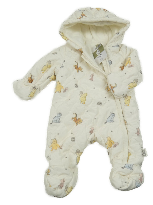 • Nové - smotanová prešívaná šušťáková zimná kombinéza s Pú s kamarády a kapucňou Tu